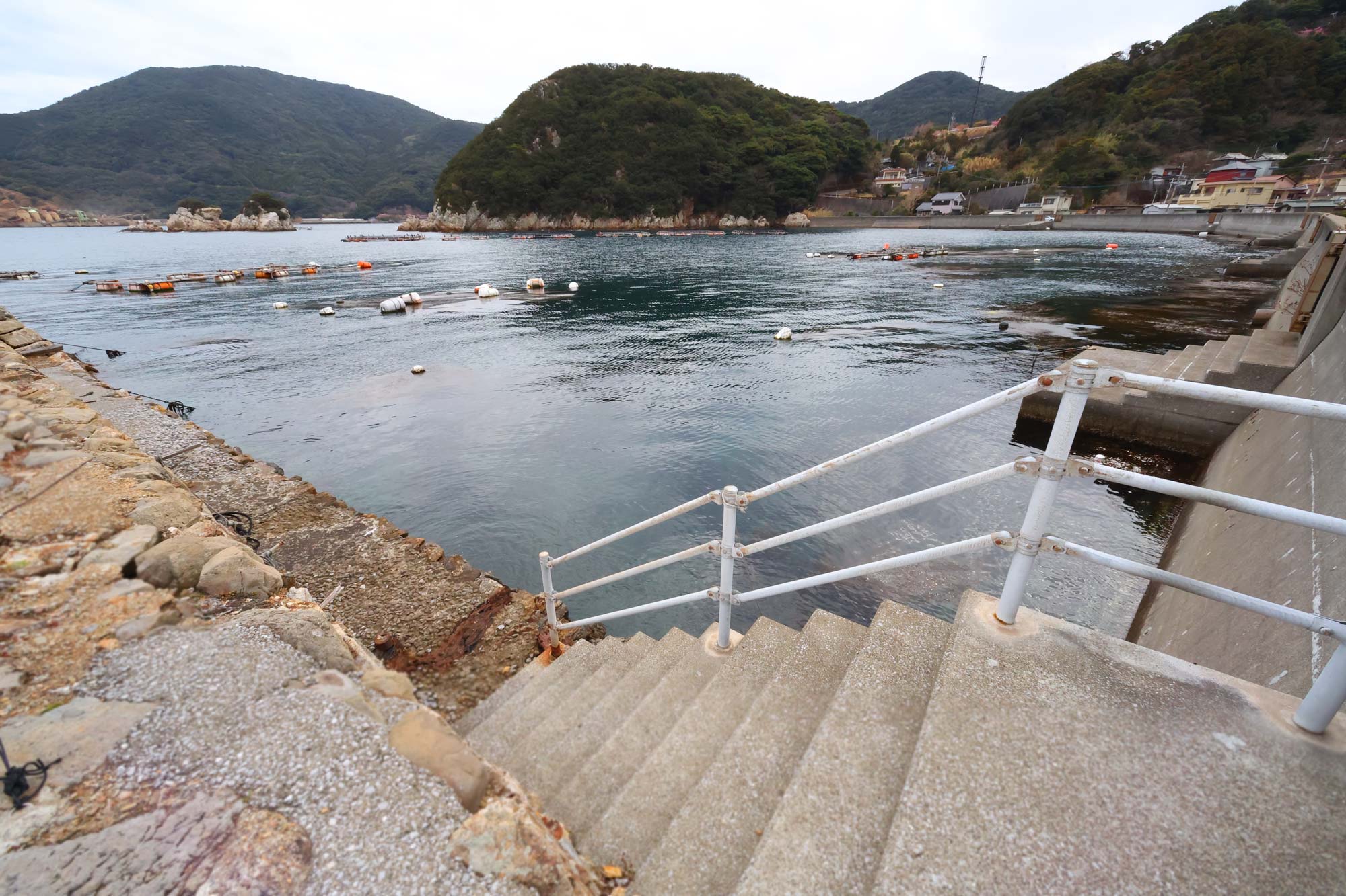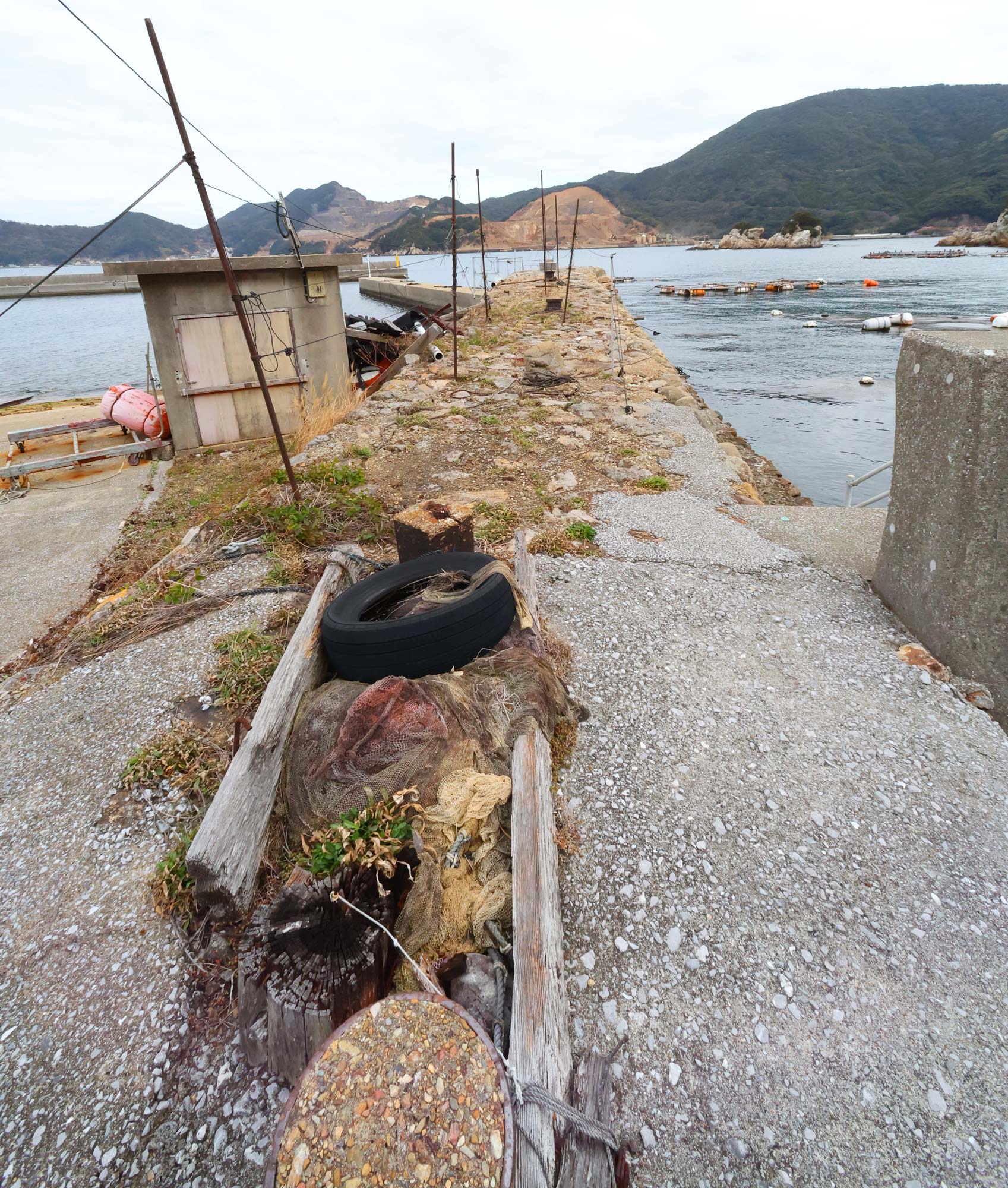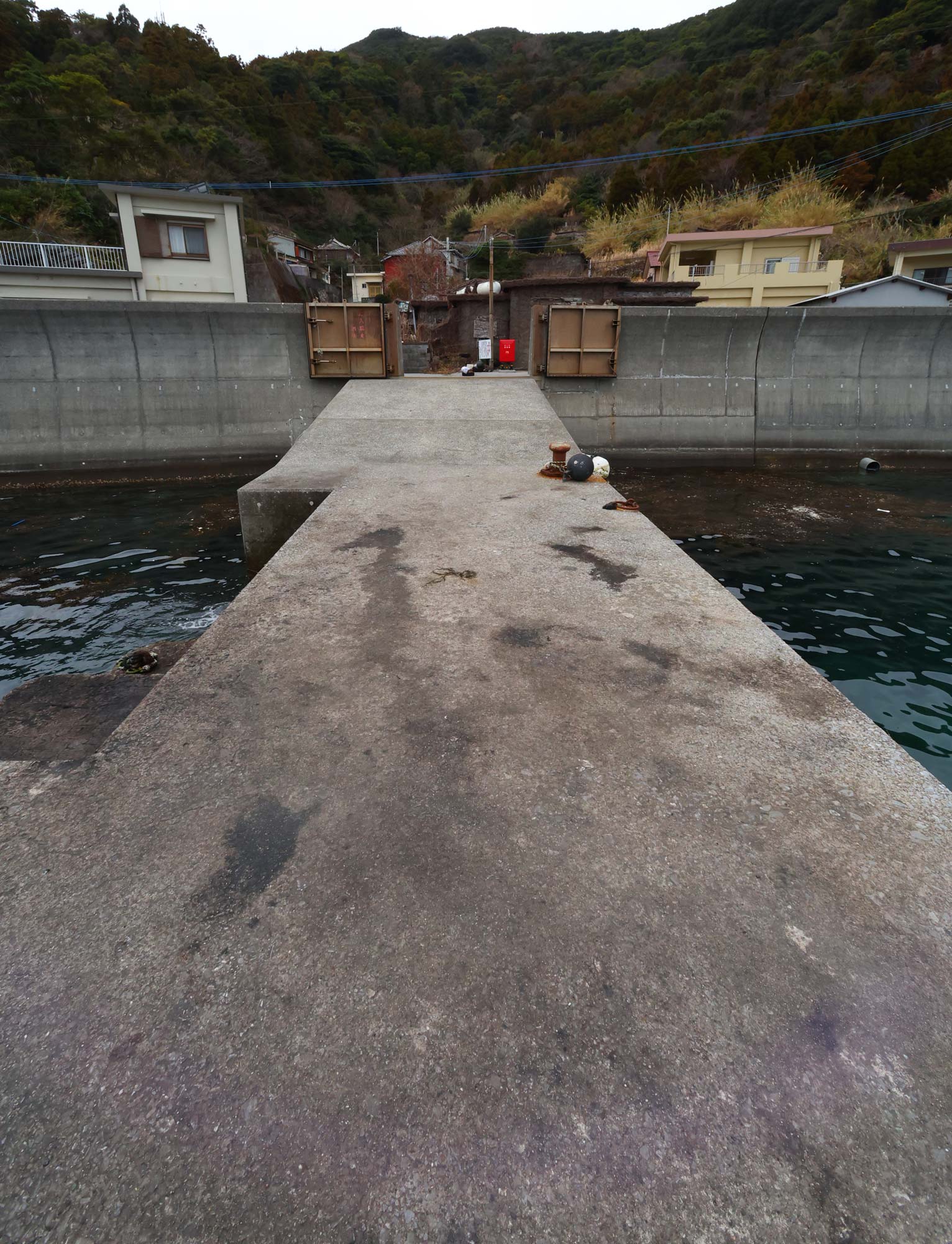 桟橋は釣り人がイカ墨を洗ってない
