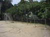 暑い日射しの中小学校の壁に向かって中学生がテニスをしていた