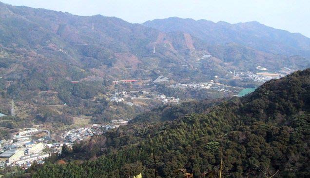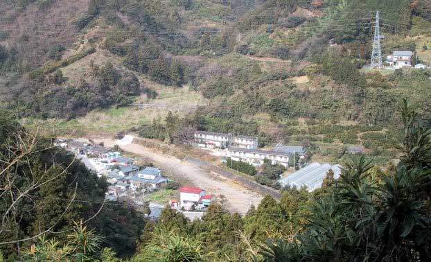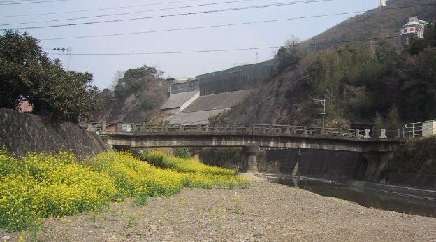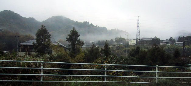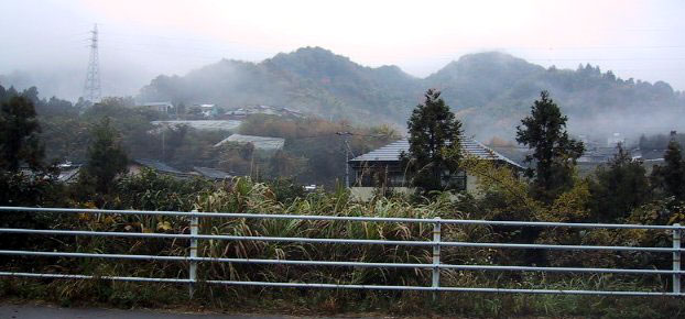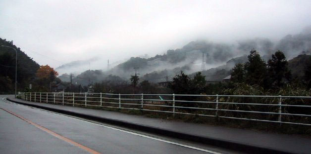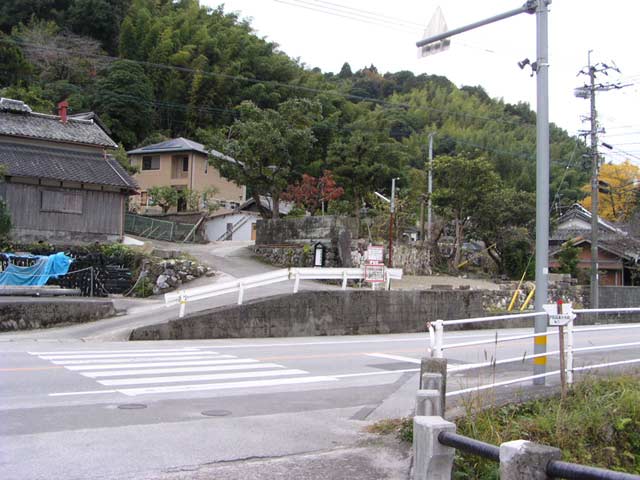 岩屋口のバス停は、鬼丸にあります 3年間お世話になった、りばーさいどまんしょん栄荘が正面に見えます |