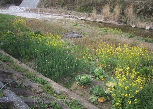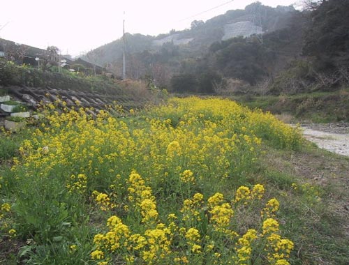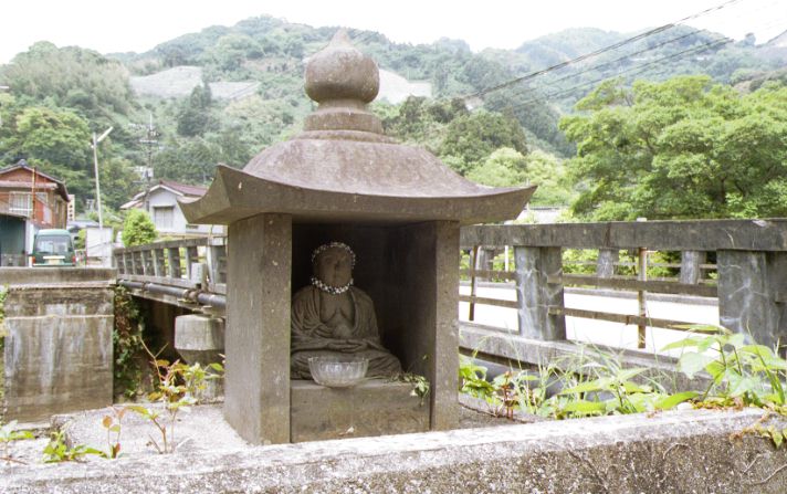 お地蔵さん 岩屋口に渡る橋のたもとにありました 水のない青江川 |