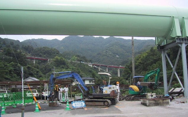 大分鉱業の電車がなくなりました/架設橋の撤去/線路の撤去/信号も無くなるのかな?2000/8/22/11:40 |
