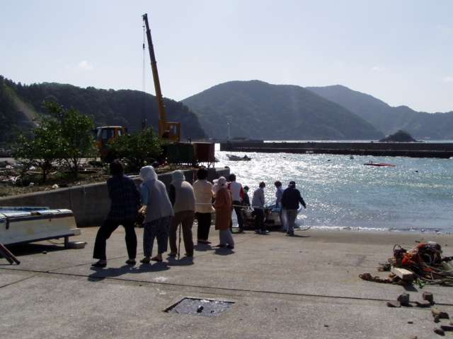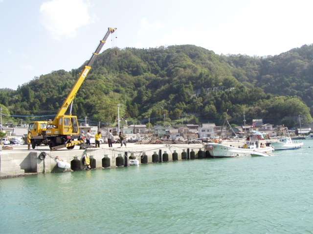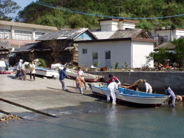 転覆した船を引き上げ