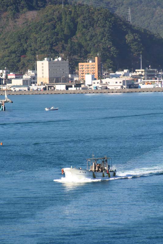 千怒崎から兵庫養殖の船