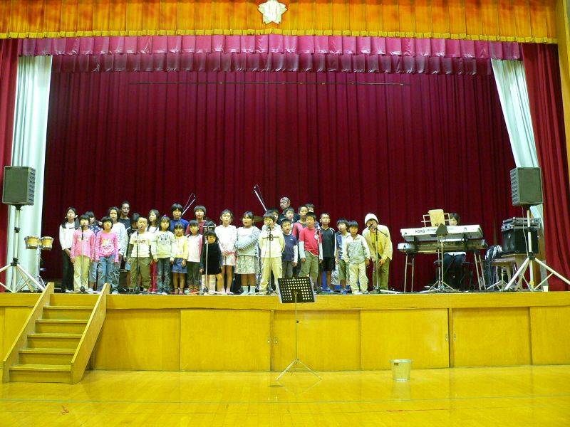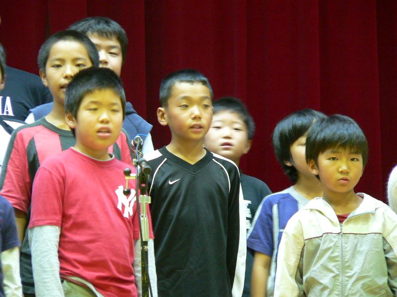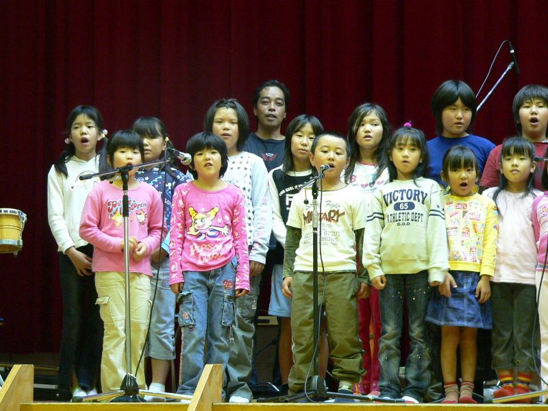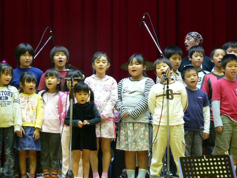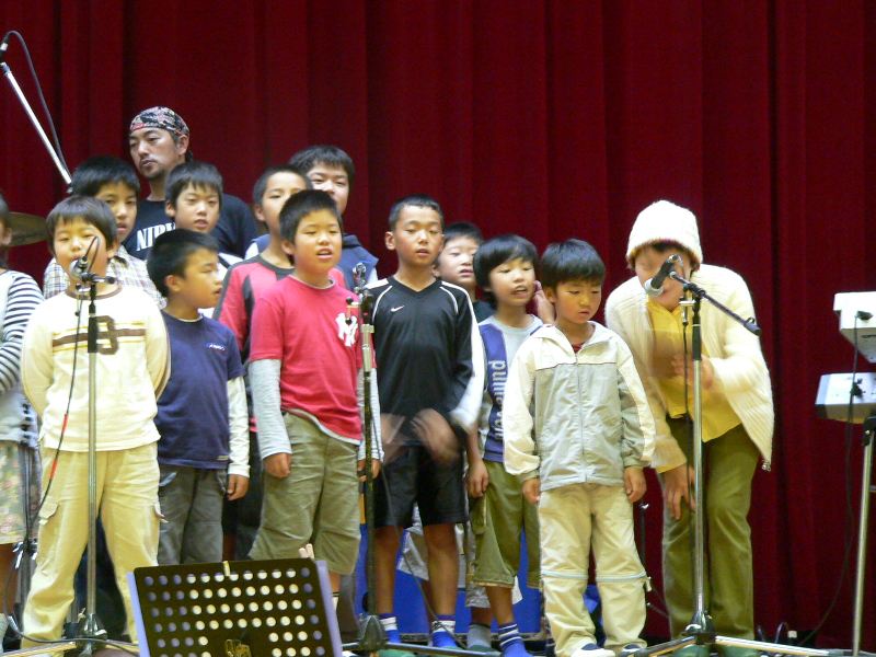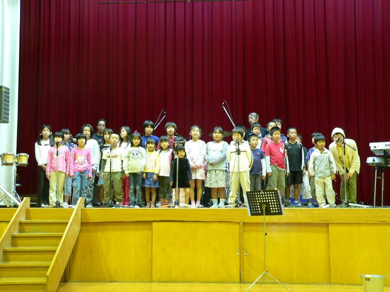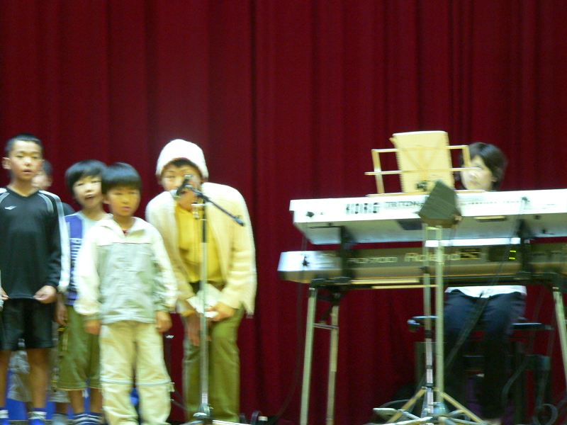 雨が降っていたので今日は中止だろうと電話したら「体育館の中で演奏会をやります」 今日は演奏会なんだ 雨上がりのすばらしい景色を急いで撮影して行ったが すぐには始まらなかった コンセのメンバーは床に座って弁当をパクついていた 今日は学校のお祭りかなと思ったのに 体育館の屋根を打つ雨音がすげぇ 野津から○○さんが来ていた 小学校の校歌を歌ってもらった 運動会は開会式で歌ったらしい 朝一でこにゃいけんなっ