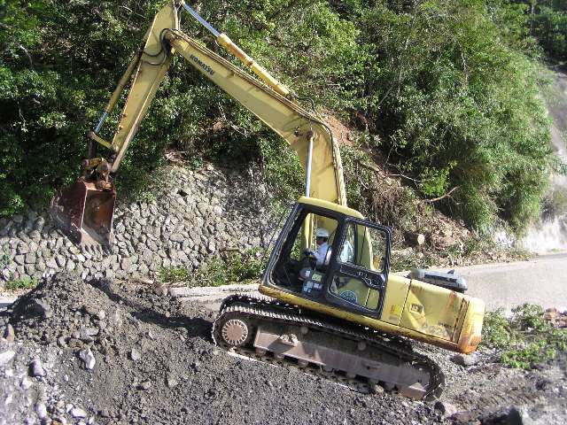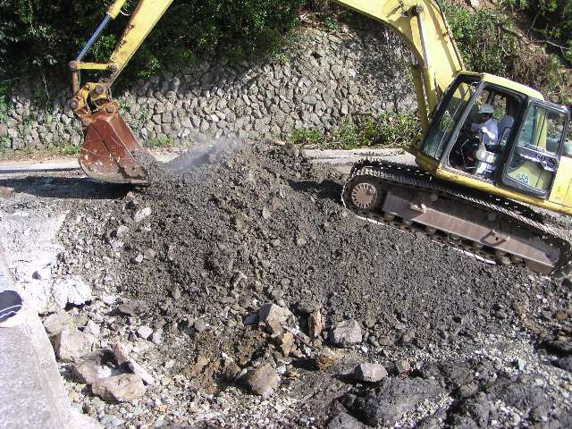 迂回路を造るために協和産業のダンプが走っています