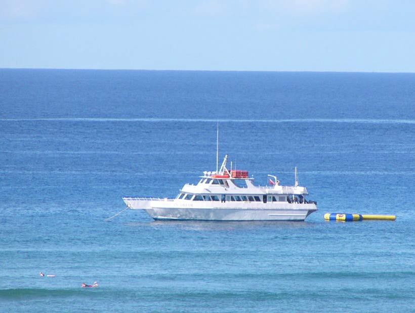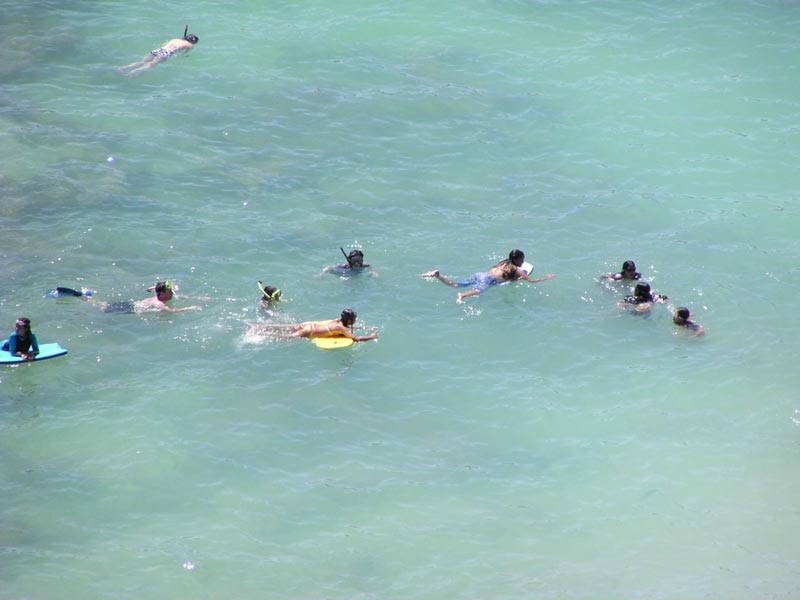 珊瑚で足を切らないように、足びれ、餌をあげれば魚が寄ってくるとか。波がないから泳ぎやすいかな