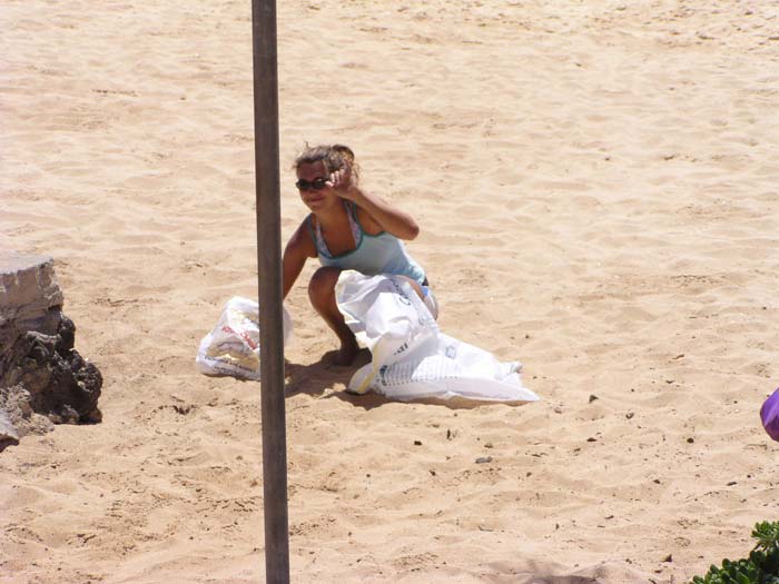 大きな波でサーフィン。掃除の若い人アルバイト?