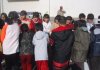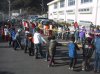 国道をテクテク歩いて学校の方に向かう人の列(校庭の駐車場は満車でしょう)