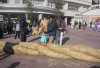 藁を追加(中に入れる)する人、藁の山から必要分を小分けして渡す人、紐が落ちたり、切れたり、よりが入ったり