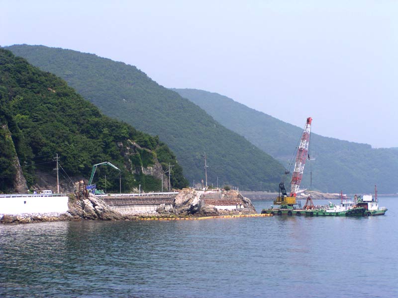 直線にして道路を広げる工事が