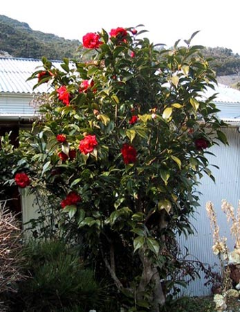 2000/8/16 バス停の周りは 花がいっぱい咲いてます |