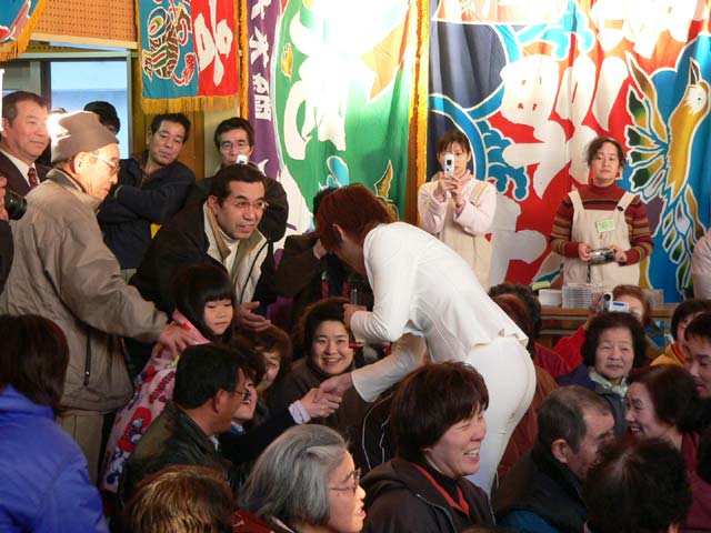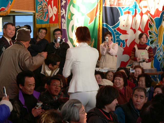 雪の中、二世会は駐車場係をしていました