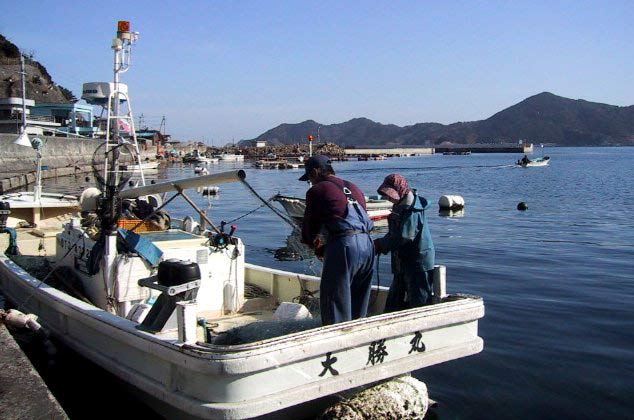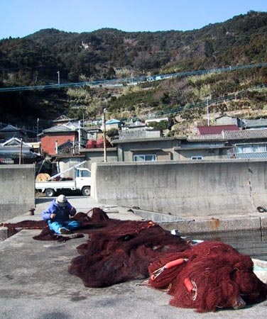 | 2001/1/31 | 油が少し浮いてます | 上野充さん桟橋で網の繕い | だいちょう引きは始まっている | ||