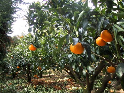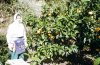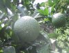 台風の後予防 甘夏に白い薬が かかっています |