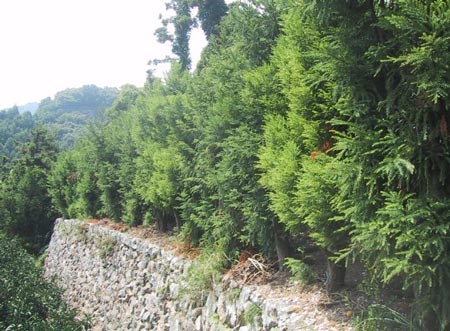 | 杉の防風林 黒いネットを かぶった清見は 撮影する気に ならない |